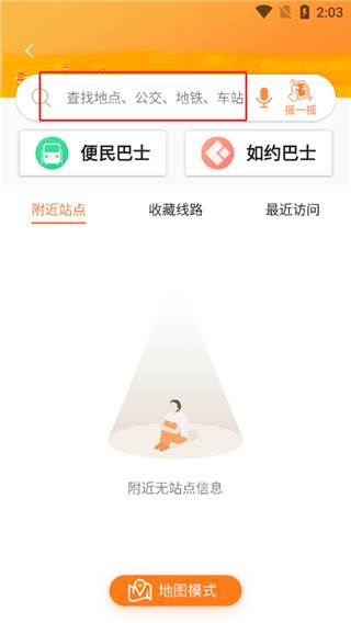 3、我们点击其中的公交功能,用户可开始定位,就会获得当前站台位置,也可以可在搜索框输入你想要的公交路线;