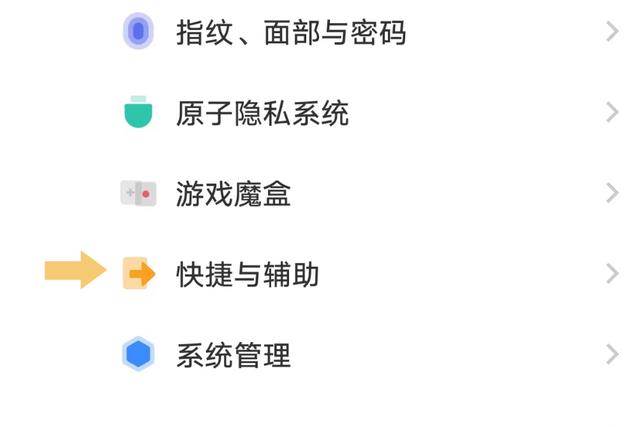 打开手机设置,然后选择快捷与辅助选项