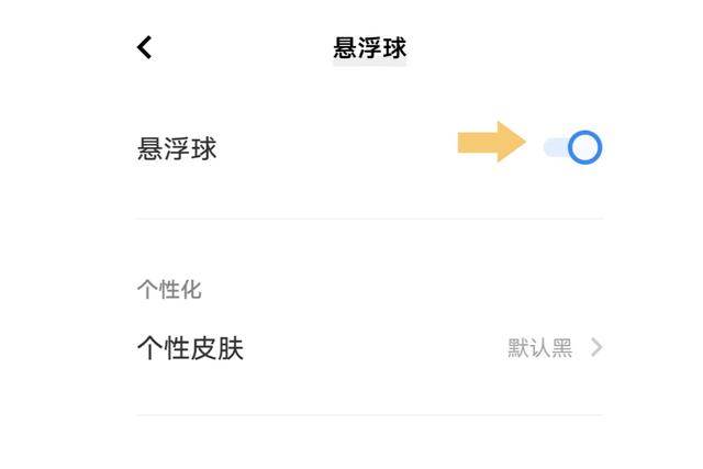 点击悬浮球,在 弹出的界面里将它的开关打开。如下图: