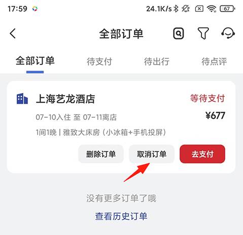 2、在全部订单页面找到需要取消的订单,点击取消订单按钮;