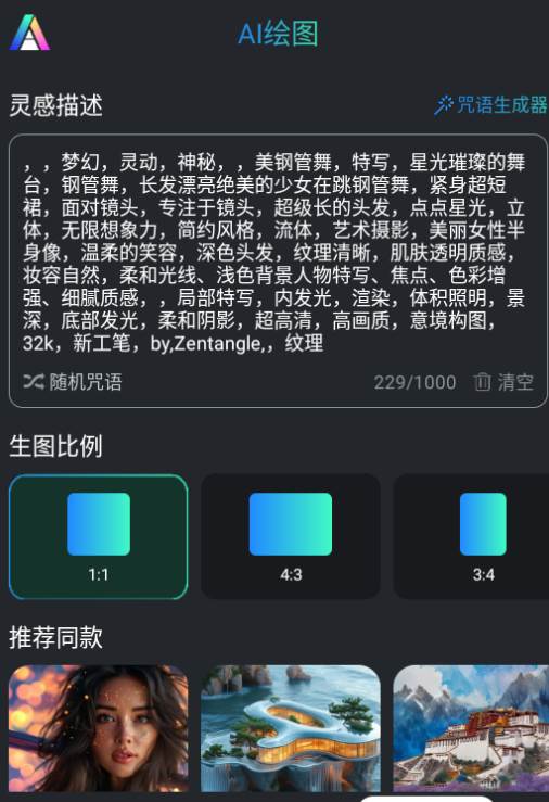 AI千绘是一款图像生成工具软件,利用先进 AI 技术,只需简单输入描述,即可精准生成风格多样的精美画作,无论是奇幻场景、写实人像还是创意概念图,都能一键进行生成,只有你想不到,没有它做不到,快来下载试试吧。