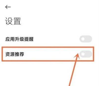 5、在设置页面,关闭“ 资源推荐 ”即可。