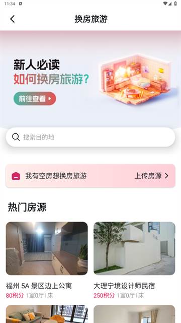 4)拿到积分你就可以在平台预定他人的房屋了,同样他人也可以使用积分预定你的房屋了,大家都必须认可积分换房的模式。