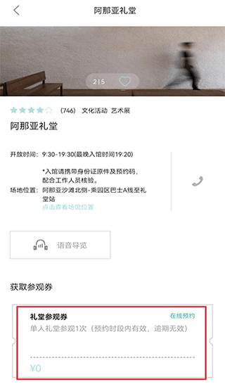 2、这里以阿那亚礼堂为例,点击预约礼堂参观券