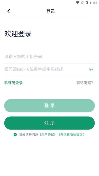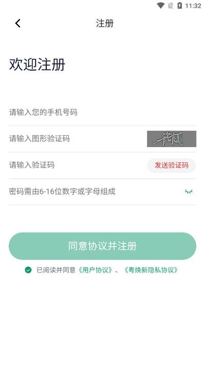 4、无账号,点击注册,输入手机号,验证码和密码进行注册
