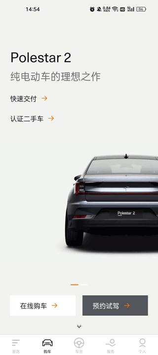 2、点击购车,这里有预约试驾和在线购车功能;