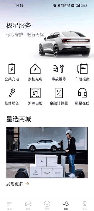 4、点开服务,这里有公共充电、车险报案、事故维修等服务。