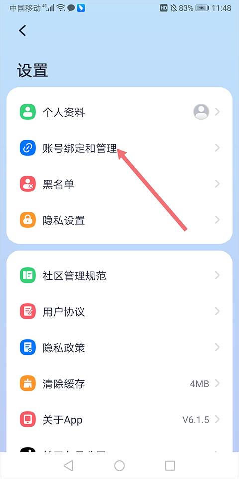 在打开的设置页面中点击【账号绑定和管理】