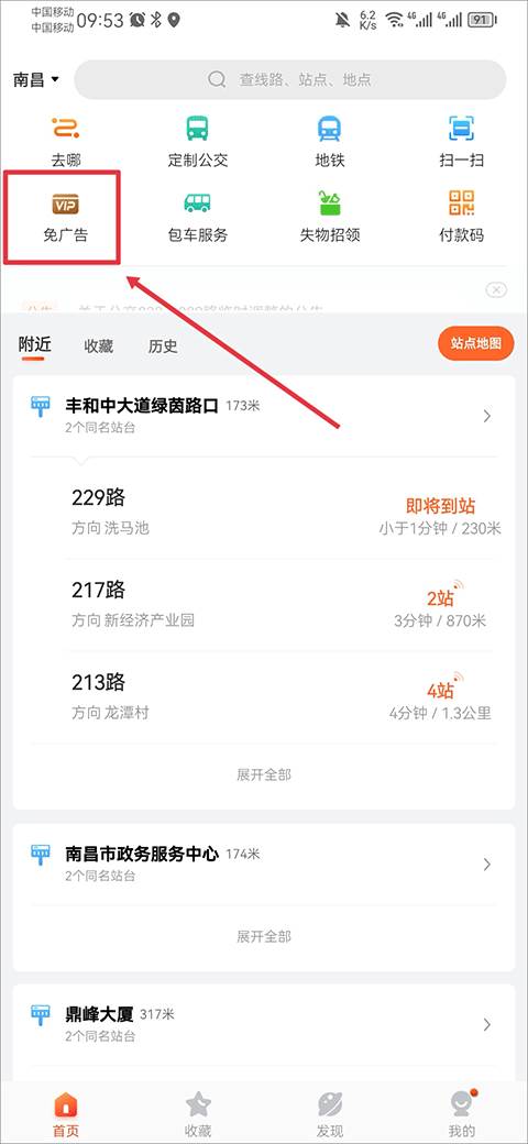 1、在app首页中点击免广告