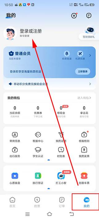 1、打开手机的智行火车票,点击下面我的选项。