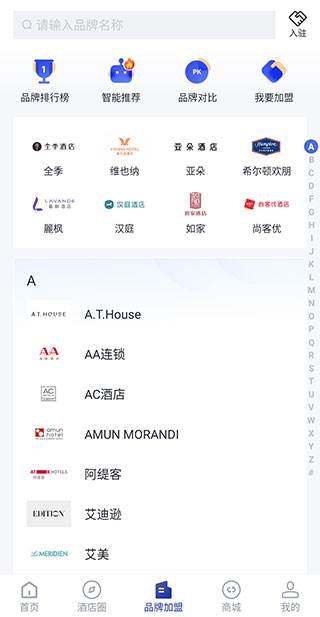 3、如果用户有意向加盟酒店,可以在【品牌加盟】页了解到此方面的更多信息。
