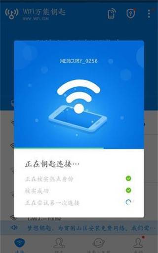 免费安全WiF热点,无忧一键连接。无论身处何地,只要打开APP,看到分享热点,点击连接即可放心上网。只要你打开WiFi万能钥匙,即可看到周围有哪些可分享热点;而且,不管你是否知道WiFi密码,你都可以进行连接。