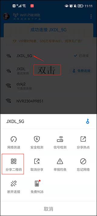 1、首先点击我们已经连接好的wifi,然后就它进行一个二维码分享即可。