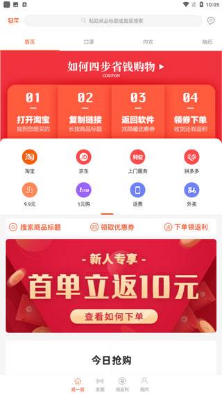 1、【领券】 海量优惠券,折扣享不停。品类丰富,好货多多。