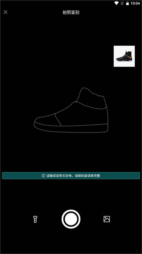 4、将你的实物对准摄像头,并进行拍照操作,将鞋子拍好后上传的平台,等平台审核之后就会出现鉴别结果了。
