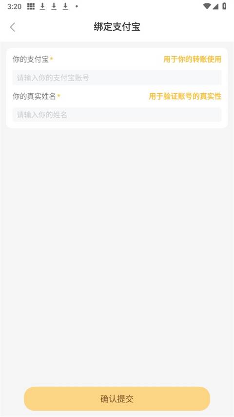 3、输入姓名和支付宝账号即可。