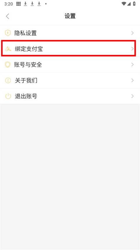 2、然后点击绑定支付宝。