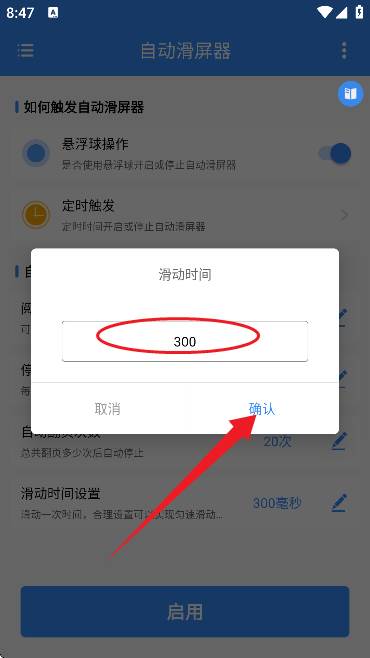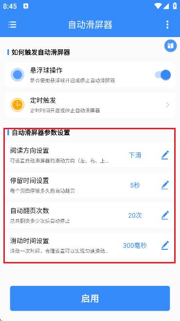 7、然后设置好【滑动时间】,最后点击【启用】即可。