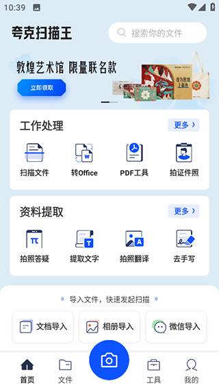 夸克扫描王app的界面简洁直观,操作流程清晰易懂,用户可以快速上手。无论是扫描纸质文件、名片、合同还是笔记,用户只需打开应用,对准文件进行拍照或者从相册中选择图片,夸克扫描王app即可快速识别并提取文本内容,实现数字化处理。