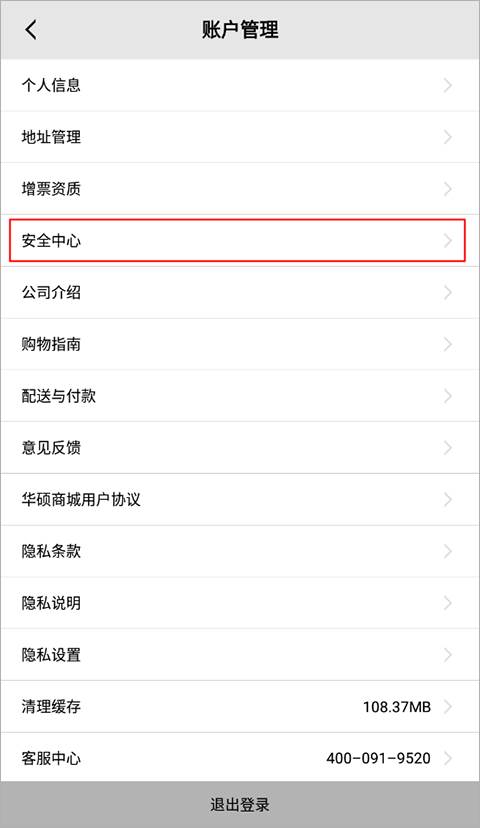 2、进到账户管理后,选择其中的“安全中心”
