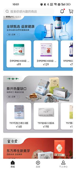 1、下载安装并打开软件,在软件首页有各种大牌商品推荐;