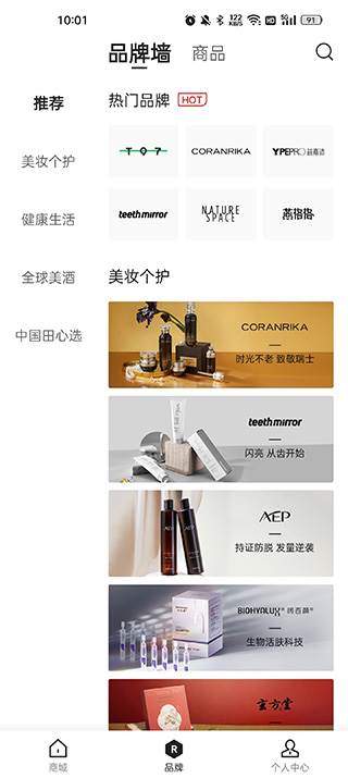 2、点击品牌,对各品牌商品类型进行分类,用户可以在这里挑选自己喜欢的商品;