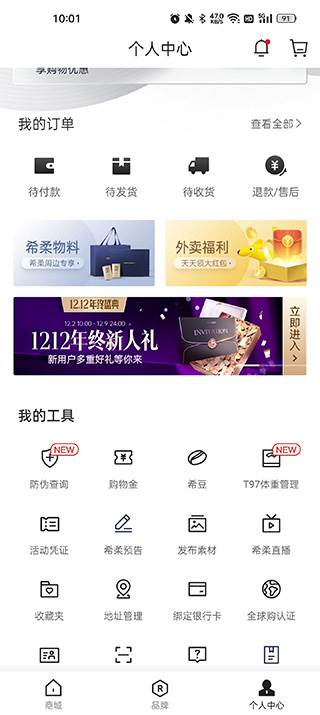 3、点击个人中心,在这里可以登录账号以及查看购买商品的订单号,还有许多隐藏小功能等待发掘。