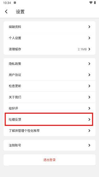 进入设置界面,点击【吐槽反馈】