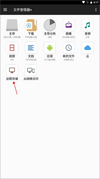 1、打开app并进入主界面,点击“远程存储”。