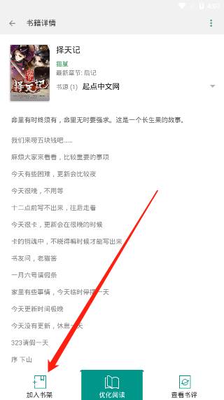 7、来到了书籍详情页后,在左下角就能够看见“加入书架”的功能并点击。