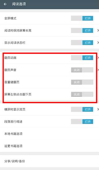 3、接下来从设置页面里,大家就可以从中点击修改翻页的方式了,大家可以来设置音量键翻页或屏幕左下侧点击翻页。