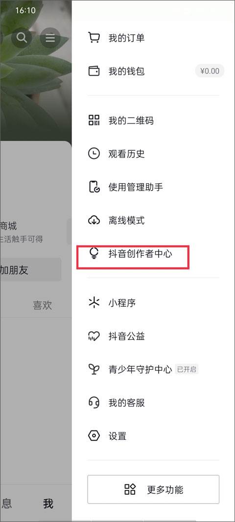 用户可以在抖音app上的【我的】界面,点击右上方的三横图标,并选择“抖音创作者中心”。