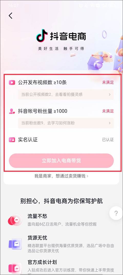 然后实名认证完成入驻抖音电商平台即可进行带货了