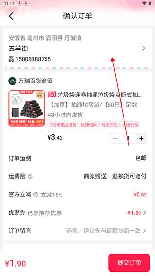 用户可以在抖音商城app(即抖音商城版app)中的订单提交确认页面下点击自己之前的收货地址