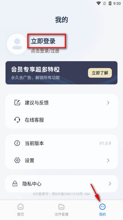 2、点击右下角我的,再点击上方立即登录