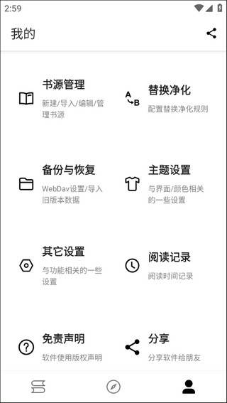 2、这里就有书源管理了,还有其他设置待会再看