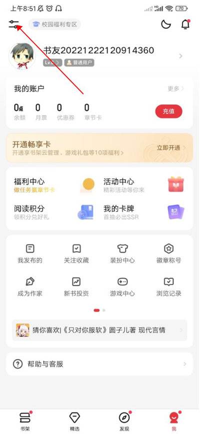 2、个人中心页面,点击福利中心区域。
