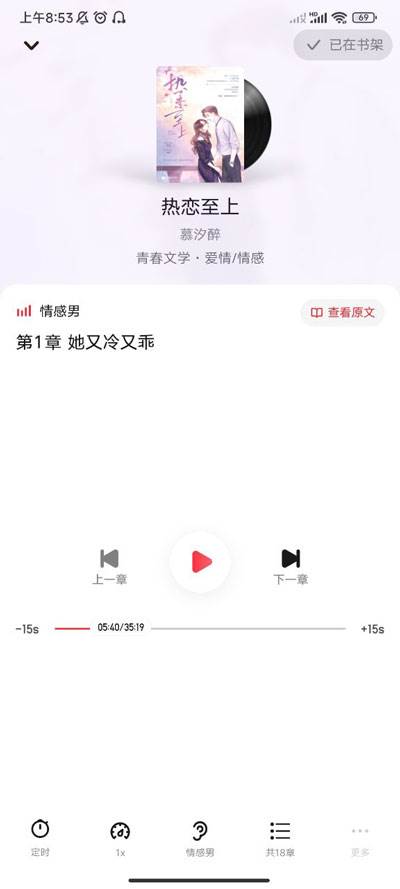 3、进入后即可听书了,页面里可以调节速度,定时关闭等