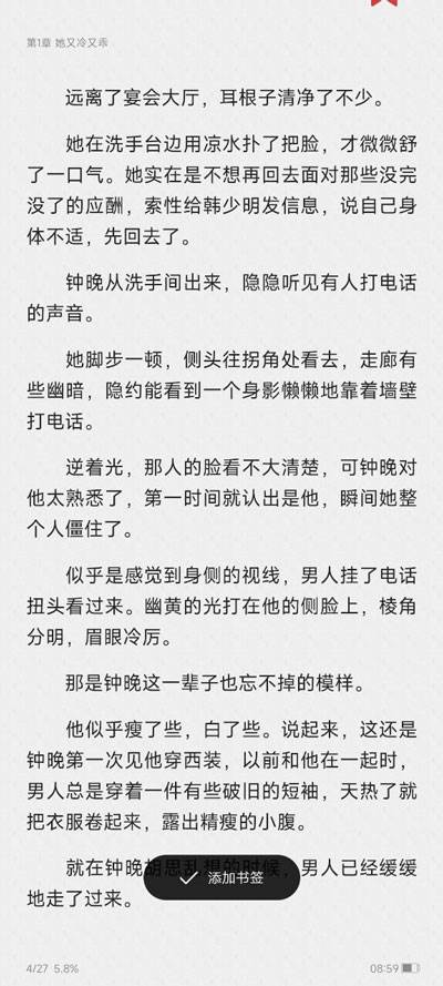 2、进入小说界面后,点击添加书签按钮。