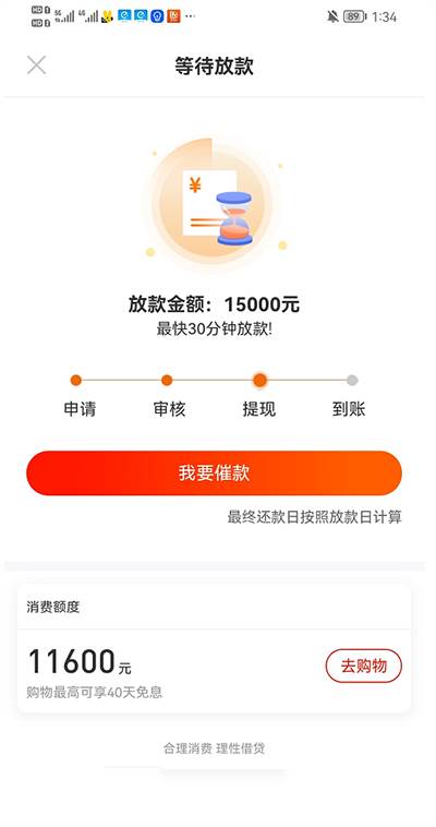 4、等待审核通过获取审批额度之后,进行额度内的金额提现申请操作即可;