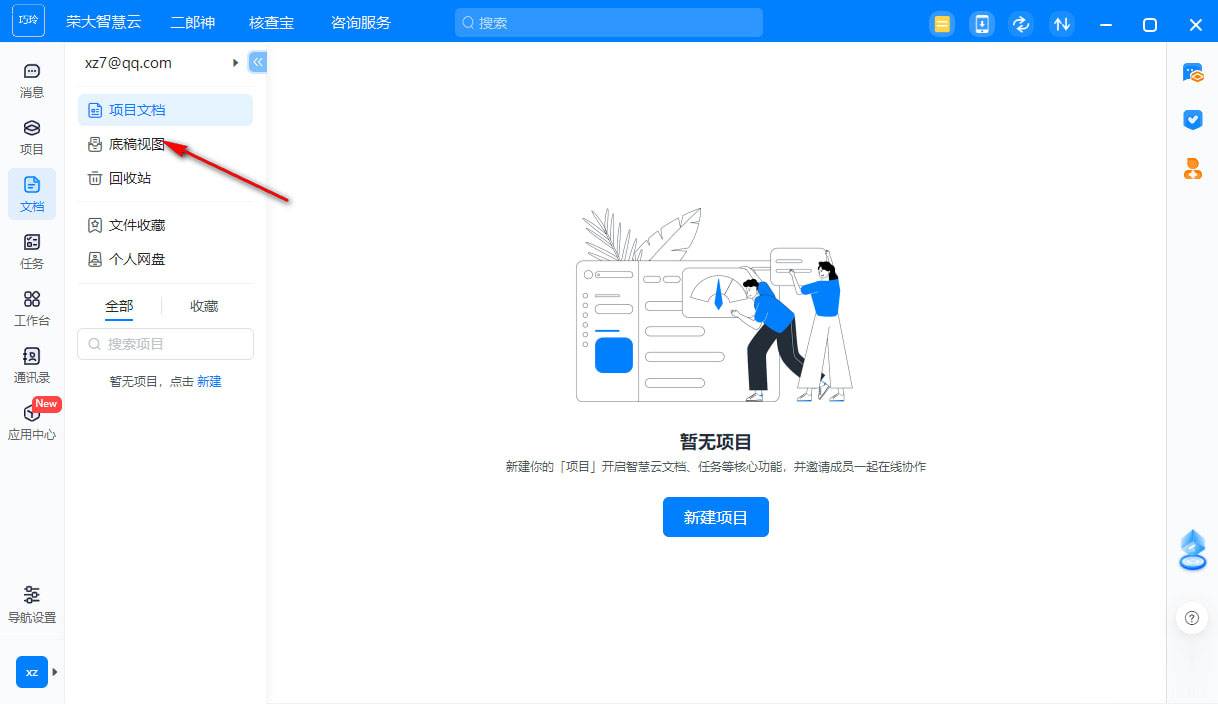 4、暂无项目,新建你的「项目」开启智慧云文档、任务等核心功能,并邀请成员一起在线协作