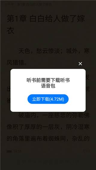 3、进入阅读界面,点击屏幕中心,它会弹出各种功能,点击听;