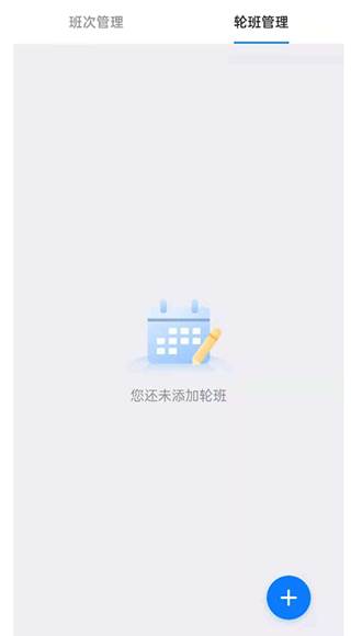 1、点击底部[我的] - [排班管理]按钮,选择[轮班管理],点击右下角的“+”号;