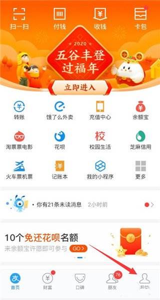 1、首先打开支付宝,点击下方菜单“我的”;