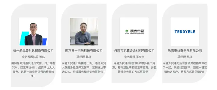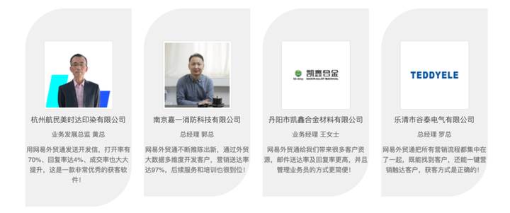 网易外贸通是网易专为外贸企业打造的一站式海外营销管理平台,助力企业多元营销、精准获客、高效协作,驱动外贸业务飞速发展。网易外贸通依托网易大数据、AI全天不停歇挖掘,智能推荐高价值潜客;基于26年邮件技术,全面提升邮件营销效率;支持社媒营销,高效触达目标客户;企业还可使用AI建站低成本快速搭建专业的外贸独立站;网易外贸通用科技赋能传统外贸,助力外贸企业精准获客。