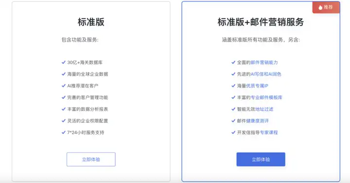 网易外贸通的收费价格主要根据软件的功能版本来确定的。网易外贸通提供了多种服务套餐,有标准版、标准版+8万邮件营销、标准版+18万邮件营销、标准版+39万邮件营销等,每个套餐的功能都不同,相应的收费也有所区别,大概几千到一万多不等。用户可以根据自己的需求和预算选择,如果需要优惠,建议联系我们的选型顾问,进行一对一沟通或者进群咨询用过的人。