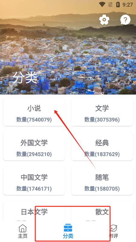 3、选择分类,找到小说栏目
