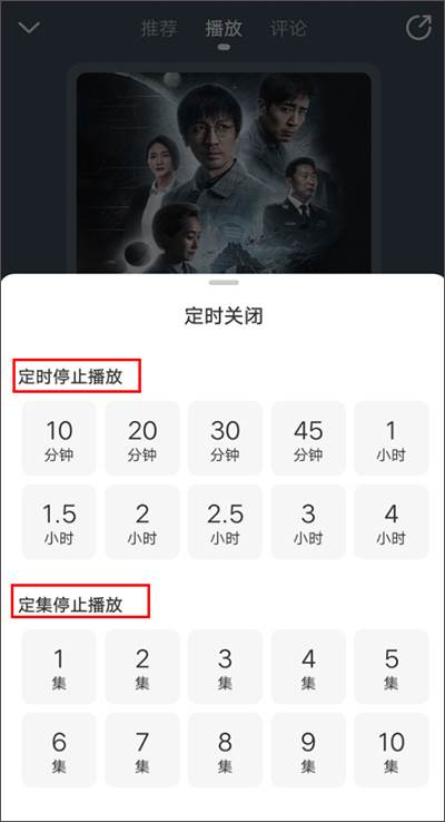 3、在设置栏内选择【定时】,然后再设置定时停止播放时间或是定集停止播放