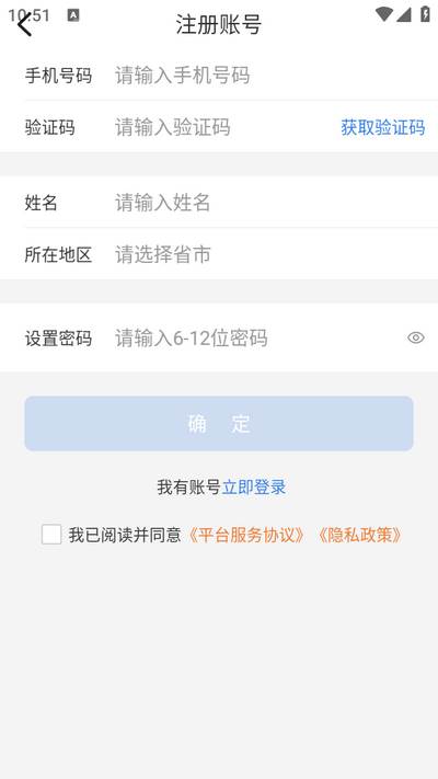 3、输入手机号、验证码、名字、地区、密码注册