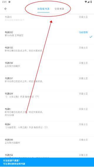1、找到想要阅读的书籍进行阅读,点击图示位置的“换源”;